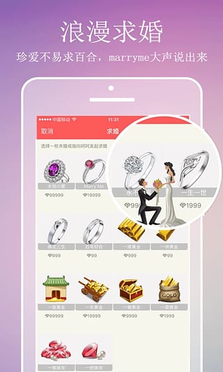4、点歌系统收录了1000+首热门情歌,支持点歌留言和语音祝福。专业歌手录制的专属情歌服务,可以把你的名字编入歌词。每月举办线上演唱会,用户有机会获得恋人角色的现场表演。