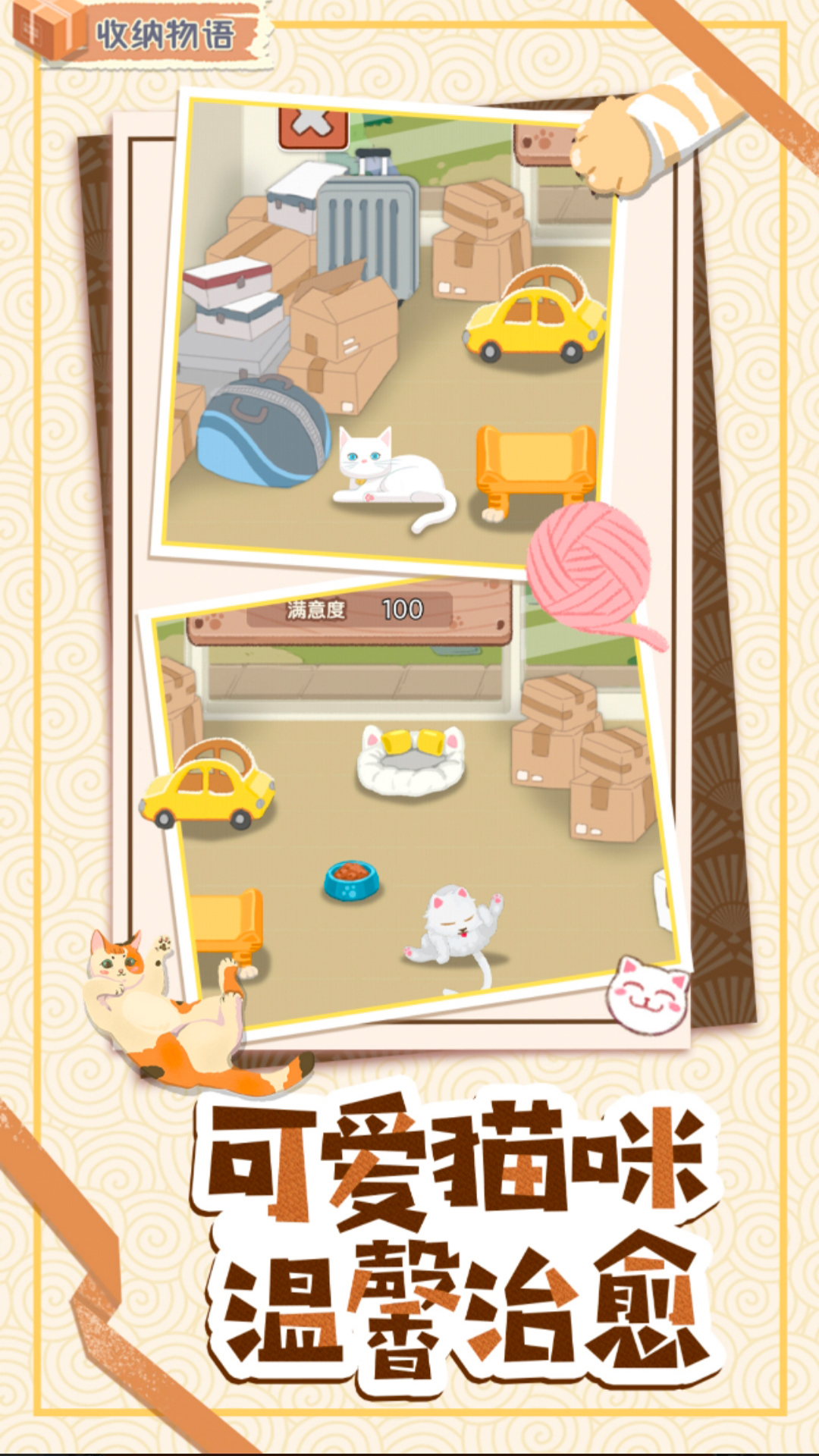 游戏最大的特色是将收纳整理与解谜玩法完美结合。你可以通过整理杂乱的物品获得满足感,治愈强迫症。日系清新画风搭配舒缓的背景音乐,营造出轻松愉悦的游戏氛围。游戏还特别设计了猫咪养成系统,让你在解谜之余享受撸猫的乐趣。多种多样的收纳挑战,从简单的桌面整理到复杂的物品组装,都能锻炼你的逻辑思维能力。完成每个关卡后,系统还会给予评分和奖励,激励玩家不断挑战更高难度。