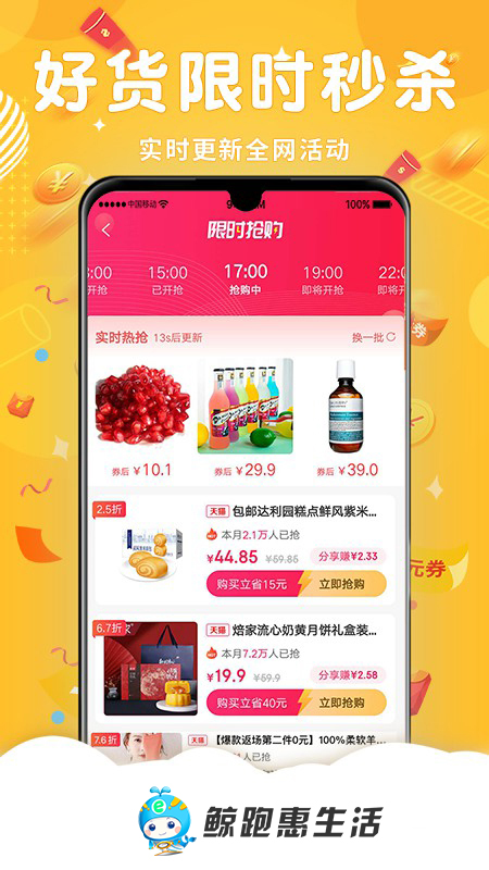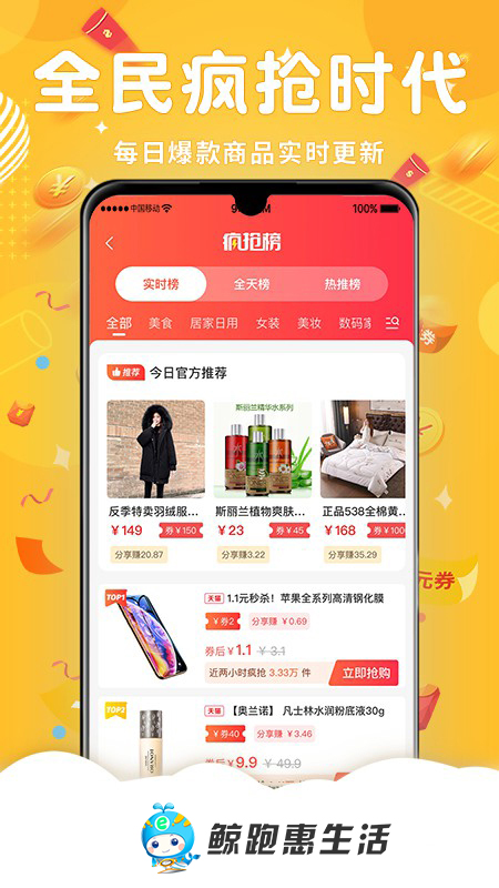 鲸跑惠生活是一款致力于为用户提供便捷购物体验和超值优惠的移动应用。通过与各大电商平台深度合作,我们精心筛选优质商品,确保每一件商品都物有所值。平台采用智能推荐算法,根据用户偏好推送个性化商品,让购物更精准高效。无论是日常生活用品还是数码家电,都能在这里找到心仪之选。我们以用户需求为核心,持续优化服务,打造值得信赖的购物平台。