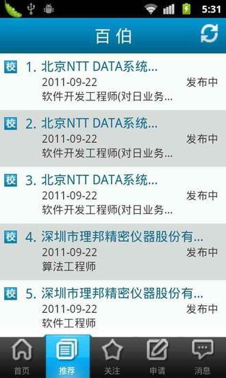 百伯招聘android版手机客户端是百度旗下百伯网(www.baijob.com)专为校园求职者精心打造的移动求职平台。该软件整合了资讯、推荐、关注、申请、消息五大核心功能模块,全方位满足求职需求。资讯板块实时更新企业招聘信息和校园宣讲会动态,用户可通过LBS定位导航快速找到宣讲会地点。推荐系统基于用户画像和求职行为数据,智能推送匹配度高的优质职位。此外,软件还提供简历诊断、面试技巧等增值服务,帮助求职者提升竞争力。作为百度生态的重要组成部分,百伯招聘依托强大的技术实力和丰富的企业资源,致力于打造最值得信赖的校园招聘平台。