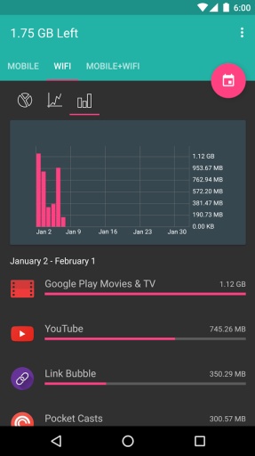 1.查看无线网络和移动数据的统计:提供日/周/月流量使用图表,支持自定义统计周期,让您全面了解网络使用习惯。