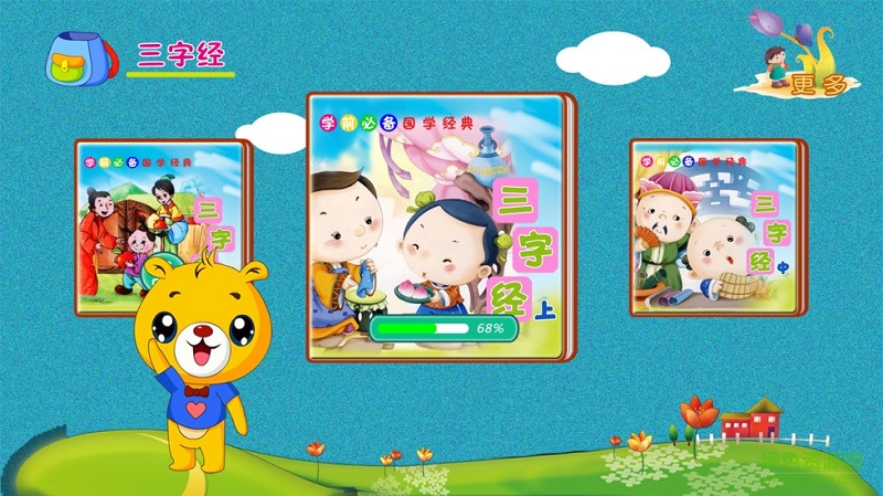 1.听一听功能:由专业播音员倾情演绎《三字经》全文朗诵,发音标准清晰,语调抑扬顿挫,让孩子感受纯正的国学韵律;