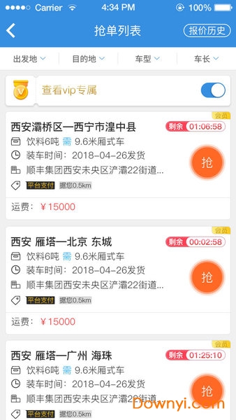 每天,当你打开app,都能看到全国各地的最新货源信息,你可以在出发前就安排好回程的货物,让你省时、省心、省钱!平台采用简洁直观的操作界面,货源信息一目了然,支持多种筛选条件快速查找。一键接单功能让抢单变得异常简单,系统还会根据历史运输记录,智能推荐高匹配度的货源。通过手机就能完成整个接单流程,大大提升了工作效率。