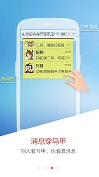 【当处在公开空间时,私密空间传来信息会提示“手机内存不足”,查看真实信息进入私密空间即可】