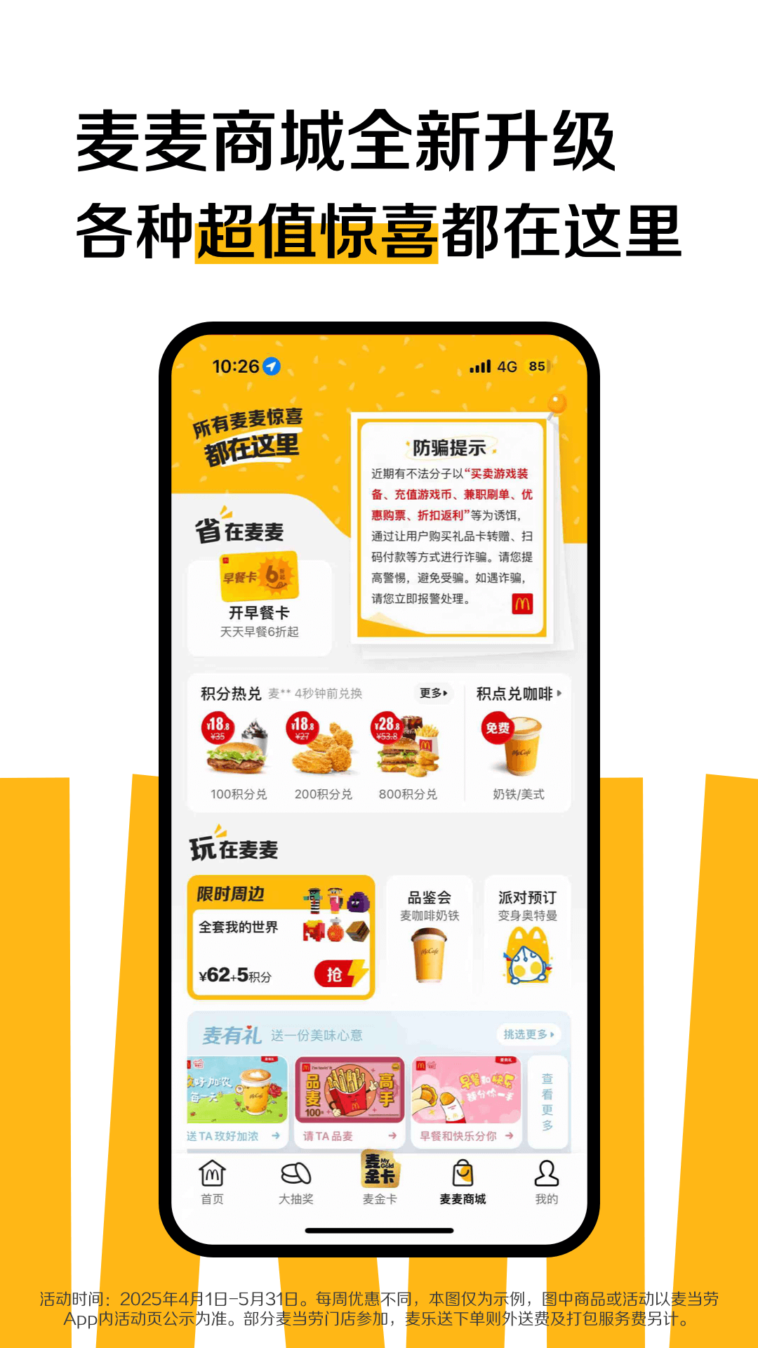 --会员体系全面升级,消费积分可兑换实物礼品或慈善捐赠,每月8号会员日享双倍积分;