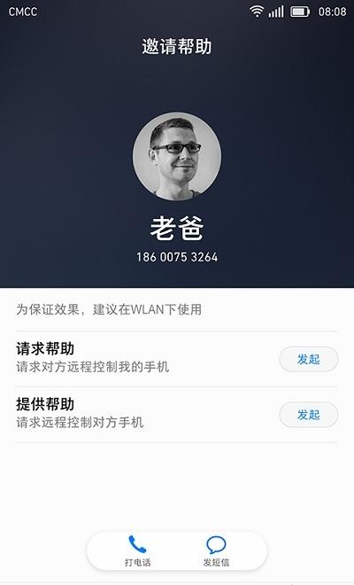 2、发起协助请求后,对方会收到邀请通知,接受连接后双方即可建立实时通讯,帮助方可以清晰看到求助方的手机屏幕显示内容。
