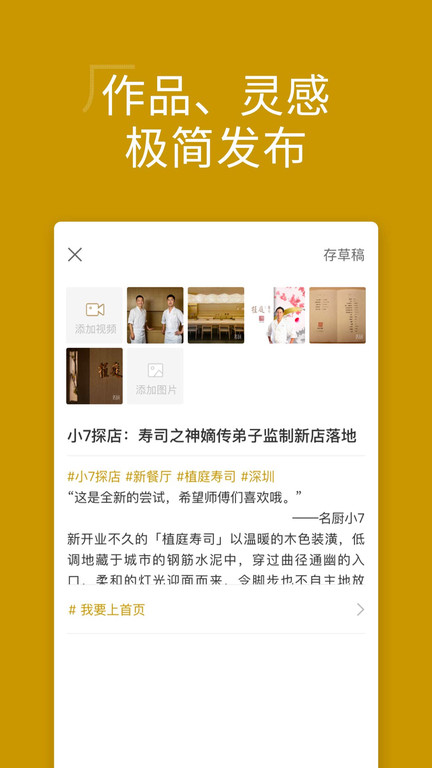 【分享个人作品】提供专业级的作品展示平台,支持高清图片和视频上传。用户可以将自己的得意之作分享给同行,获得专业评价和建议,同时也能建立个人品牌影响力。