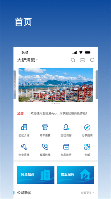 深圳港ePark是深圳港集团专为产业园区企业及租户研发的智能化移动服务平台。该应用深度融合办公场景与园区生活场景,通过数字化手段重构传统业务流程,现已形成包含资产管理、客户服务、物业管理在内的完整生态体系。作为集团数字化转型的核心载体,平台采用模块化设计理念,可根据不同园区特性灵活配置功能模块,目前已成功实现大铲湾园区全功能落地,未来将持续扩展至更多产业园区,为用户提供更智能、更便捷的园区服务体验。