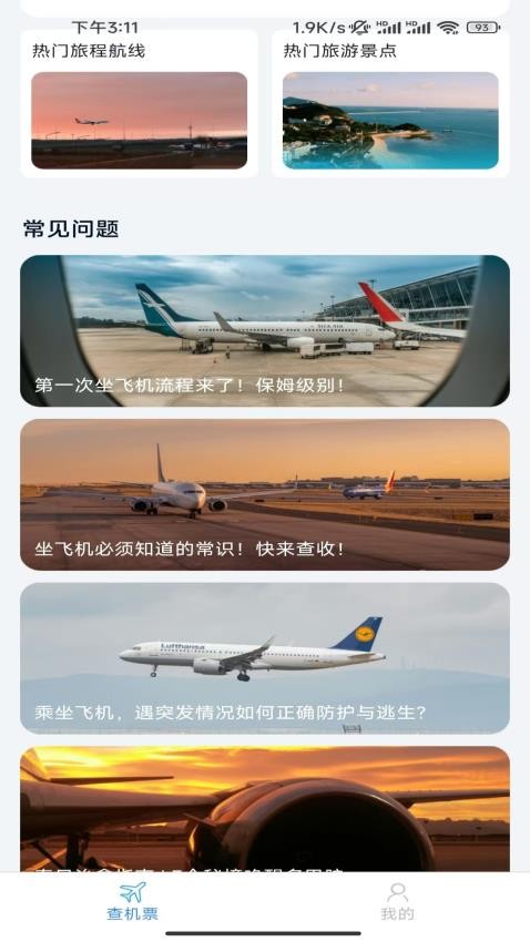 特惠机票查询APP最新版是一款功能强大的出行助手软件,专为旅行爱好者打造。它不仅提供实时航班查询服务,还能根据用户需求智能推荐特惠机票,让您的每一次出行都能享受最优惠的价格。软件特别贴心地为首次乘机用户准备了详细的新手指南,从值机流程到安检须知一应俱全。同时,它还整合了丰富的应急知识库,帮助用户应对各种突发情况。此外,软件会根据季节和热门程度推荐精选旅游景点,并整理了乘机常见问题解答,让您的旅途更加轻松无忧。无论是商务出行还是休闲旅游,这款APP都能成为您最得力的旅行伙伴。