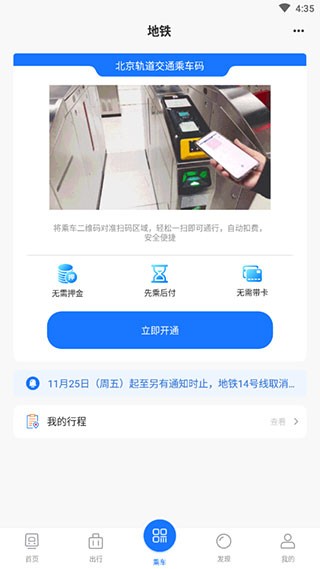 进入乘车码页面后,点击"立即开通"按钮开始设置乘车码功能。