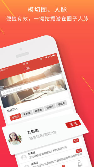 便捷有效,一键挖掘潜在圈子人脉 - 智能推荐系统根据您的业务需求,自动匹配潜在合作伙伴,建立有价值的行业关系网络。