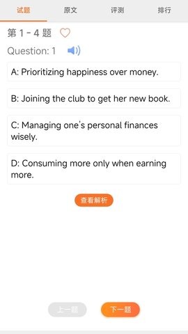 2.精心设计的用户界面将音频播放、原文对照、答案解析等功能完美整合。支持倍速播放、单句循环等实用功能,用户可以自由调节学习节奏,获得最佳的学习体验。