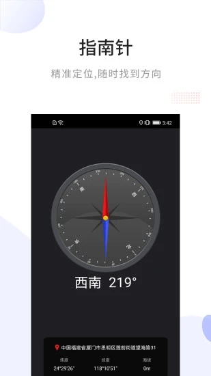 3.指南针功能:内置高灵敏度电子罗盘,提供准确的方向指引,帮助用户在野外轻松辨别方位。