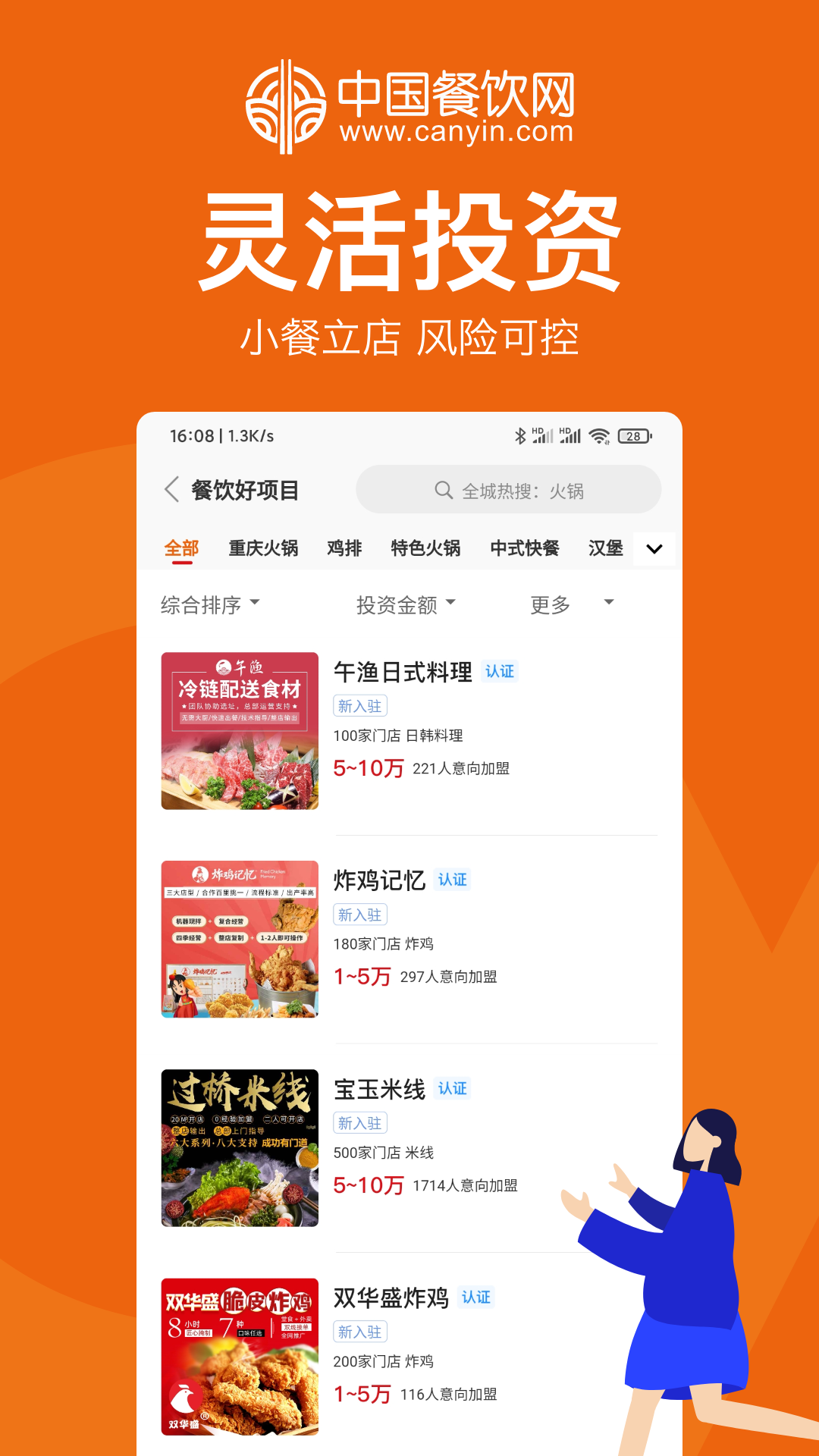 中国餐饮网为用户提供餐饮业全方位的投资项目,包括中餐、西餐、火锅、快餐、小吃、甜品、咖啡店、茶馆、日韩、烧烤、饮品、面包蛋糕店、馄饨、拉面、米线、熟食、汉堡、奶茶、冰淇淋、烘焙、鸡排、冒菜、麻辣烫、肉蟹煲、焖锅、中式快餐、寿司、烤肉、牛排、披萨、串串、啵啵鱼、酸菜鱼、烤鱼、沙拉、地方特色菜等行业分类信息。平台不仅覆盖了各类餐饮业态,还针对不同投资规模提供了多样化的选择,从几万元的小型店铺到上百万元的大型连锁品牌应有尽有。此外,中国餐饮网还提供专业的市场分析报告和投资风险评估,帮助用户更好地了解行业趋势,降低创业风险。