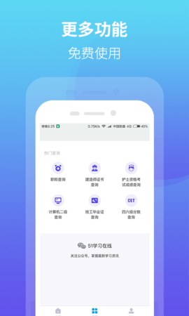 这里还可以进行四六级考试成绩查询的,直接在线查询成绩。除了基本的成绩查询外,还提供历年考试成绩对比分析功能,帮助学生了解自己的英语水平变化趋势,为后续学习规划提供参考依据。