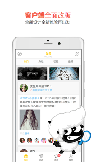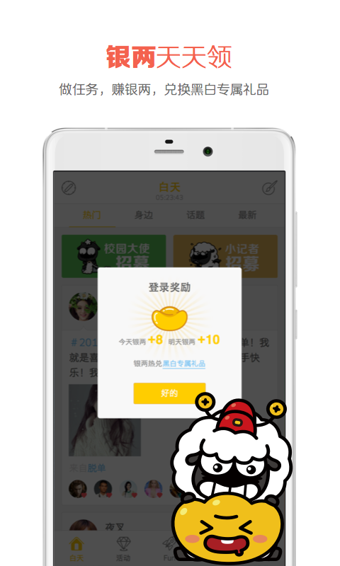 作为大学生校园生活的超级管家,《黑白校园》APP已获得全国2000多所高校学生的青睐。在这里,你不仅可以参与本校活动,还能跨校联谊,结识更多志同道合的朋友。社区玩法丰富多样:自拍打分、貌美如花榜、热门TOP10、疯狂星期五等特色活动应有尽有。无论你是学霸还是学渣,都能找到适合自己的内容:学霸可以查询讲座信息,学渣可以约娱乐活动,精打细算的人能找到优惠信息,艺术爱好者可关注演出资讯,比赛达人能追踪赛事动态。每晚9点到次日7点,APP会进入独特的"黑夜"模式,用户将获得随机ID,完全匿名互动,让你在夜晚释放真实的自我。