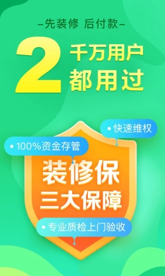 与10家银行合作推出装修分期服务,最高可贷50万元,最长分60期还款。新用户专享前6期0利息优惠,审批通过后资金直接划入托管账户,杜绝挪用风险。