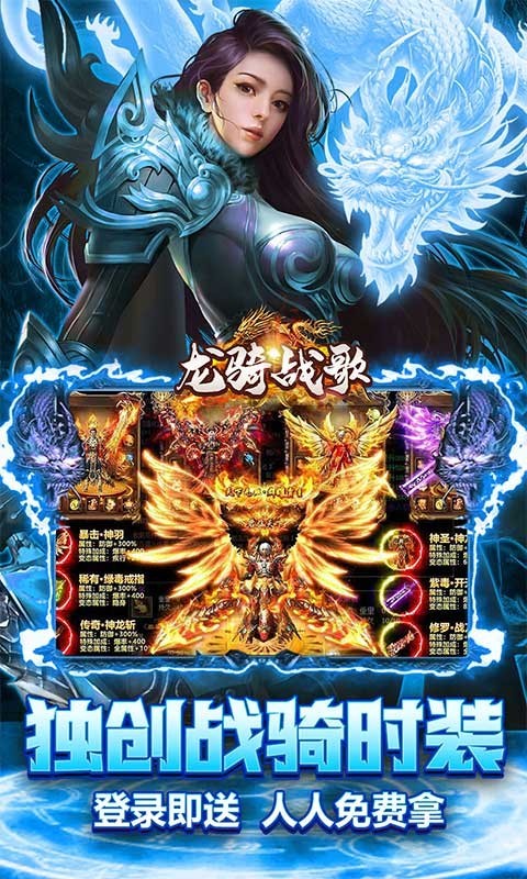 《龙骑战歌福利版》震撼来袭,这是一款融合经典传奇玩法与创新元素的竞技手游。游戏以独特的养龙系统和骑战玩法为核心,带来前所未有的传奇体验。玩家可以享受无限资源爆率、丰厚充值返利等超值福利,多元服务器支持跨区竞技,让战斗更加刺激。开局即送金龙、战骑和神器套装,零门槛畅享顶级装备。超变单职业设定简化操作,同时保留传奇精髓,无论是PVE刷怪还是PVP对决都能获得极致快感。创新的打怪爆充值机制更是让平民玩家也能逆袭,堪称良心传奇手游的典范之作。