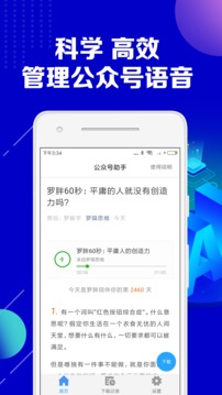 公众号助手是一款专为微信公众号运营者打造的移动端管理工具,让用户能够突破时间与空间的限制,轻松掌控公众号运营。这款软件不仅支持公众号内容的实时编辑与发布,还能帮助用户高效获取其他公众号的优质资源,实现内容的快速采集与整合。通过简洁直观的操作界面,用户可以随时查看公众号数据、管理粉丝互动、优化内容策略,全面提升公众号运营效率,是自媒体人不可或缺的掌上助手。
