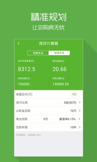 精准规划你的购房基金:内置多功能计算器,可精确计算首付、月供、税费等各项支出,还能根据收入情况评估购房能力,帮助用户合理规划资金。