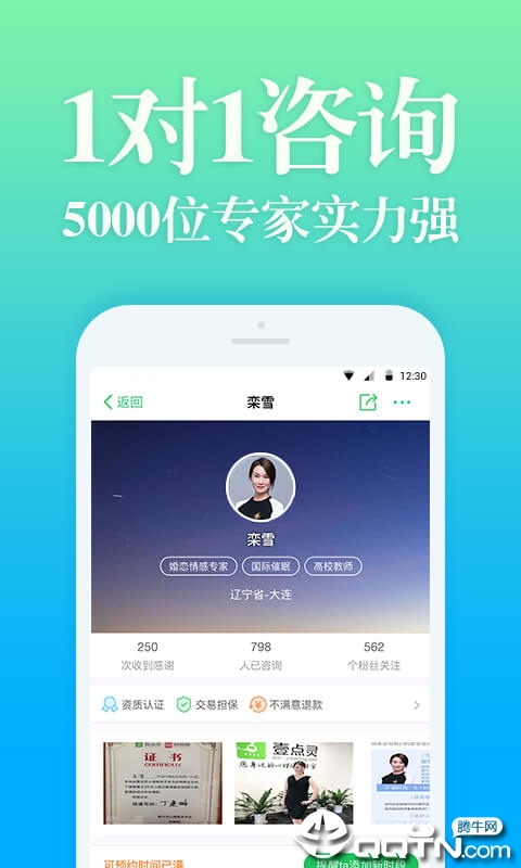 专业咨询 一键预约资深心理咨询师,涵盖恋爱婚姻、情绪管理、个人成长、焦虑抑郁等各类心理问题。支持文字、语音、视频多种咨询方式,线上或线下灵活选择。