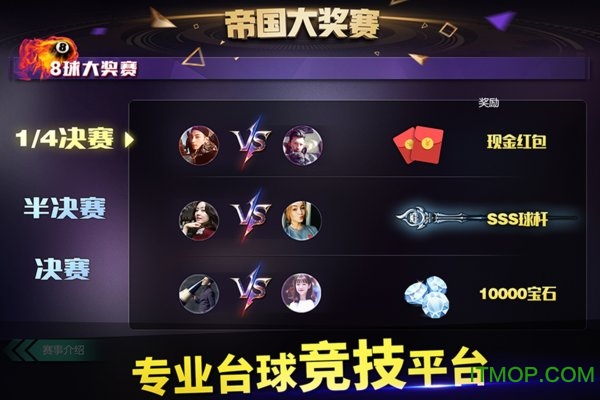 5.斯诺克:提供最纯正的斯诺克玩法规则,让玩家体验职业选手般的击球手感,轻松实现单杆过百的精彩表现。
