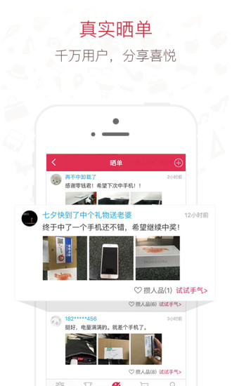 4、社交分享:中奖后不仅可以晒出精美商品照片,还能分享您的夺宝心得和喜悦。平台提供专属社区,让您与其他用户交流经验,扩大社交圈层。