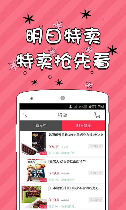 *『天天特卖』:我们每天都会推出超值特卖活动,精选进口零食以远低于市场价的价格限量发售。特别设置的0.1元抢购专区每天10:00准时开启,让你用最低的价格享受最高品质的美食。所有特卖商品都经过严格筛选,确保在低价的同时不降低品质标准。我们还提供特卖商品预告功能,让你提前规划抢购计划。