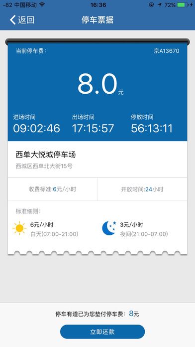 停车:创新的车牌识别技术让停车更便捷,绑定车牌后系统自动生成电子停车票据,实时显示停车时长和费用明细,让停车计费透明化、规范化。