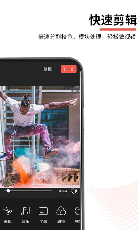 -「神奇倒放」支持选择性倒放,可指定视频片段进行时间反转,创造超现实视觉效果。-「快放慢放」无级变速控制精度达到0.1倍增量,配合智能补帧技术确保画面流畅。-「分屏同框」新增画中画、九宫格等15种布局模板,支持每个画面独立调节。-「视频配音」语音转字幕功能准确率提升至98%,支持20种语言识别。-「专业转场」新增粒子溶解、光影变形等电影级转场效果15种。-「淘宝主图」优化商品展示动画模板,新增3D旋转展示等专业电商功能。