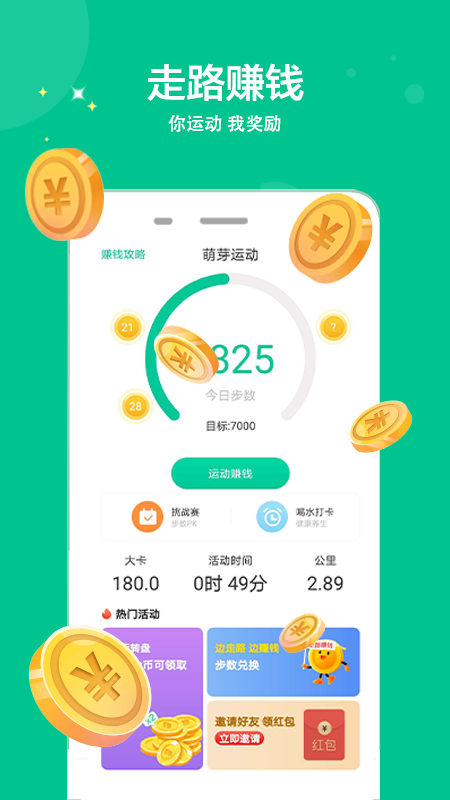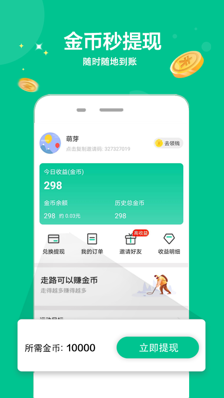 步数兑换金币,每天把运动步数兑换为金币。兑换比例透明公开,步数越多收益越高,最高可达每日10000步兑换100金币。