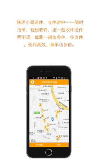 2.快递小哥送件、收件途中:随时抢单、轻松收件,跑一趟收件送件两不误,每跑一趟收多件,多收件。便利高效,事半功多倍。智能路径规划算法会根据实时订单分布自动推荐最优路线,内置的电子面单打印功能支持主流打印机型号,大幅减少手工填写时间。任务优先级系统可自动识别加急订单,确保特殊件准时送达。