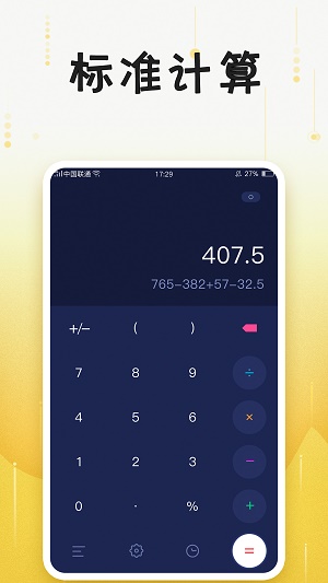 标准计算器:支持日常生活中的加减乘除等基本运算,满足您的常规计算需求。