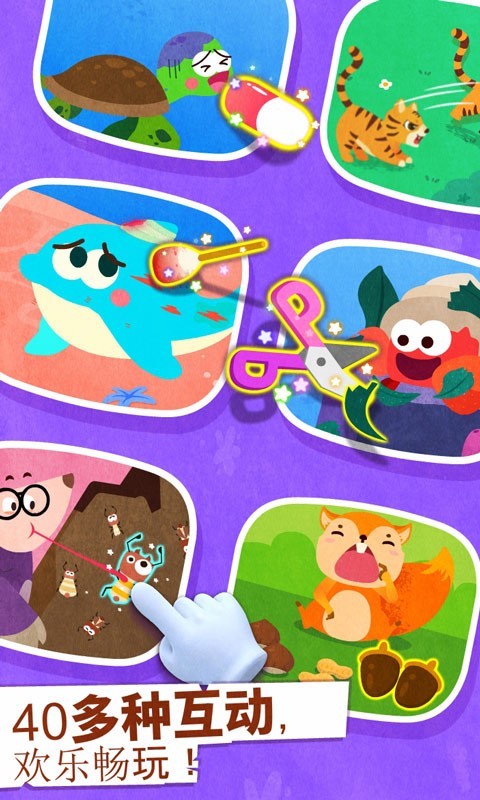 神秘的森林王国里每天都在上演精彩的故事:小老虎正在悄悄接近猎物,它能成功捕获食物吗?啄木鸟医生发现了树干里的害虫,该如何帮助树木恢复健康?这些精心设计的互动场景,既能锻炼孩子的观察力和判断力,又能让他们了解森林生态系统的奥秘。游戏还设置了趣味装扮环节,小朋友可以发挥创意,为孔雀设计漂亮的尾羽,培养艺术审美能力。