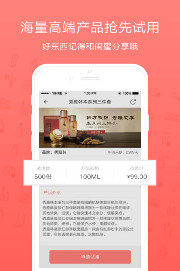 与众多国际一线品牌建立深度合作,定期推出新品试用活动,让您有机会免费体验最新上市的高端美妆产品,发现心仪好物后还能与闺蜜分享使用心得。