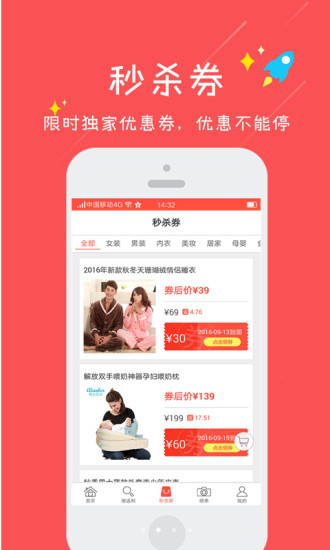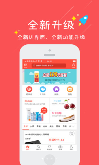 3、品牌特卖:千余家知名品牌,服装、居家、母婴、食品、鞋包、数码电器任意返!新增多个国际大牌入驻,提供专属返利优惠,让您以更实惠的价格购买正品好货。