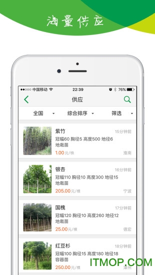 苗木宝是一款专注园林,服务生态,由福建楷霖开发的提供苗木交易服务信息。作为行业领先的移动应用,它不仅提供基础的交易信息服务,还整合了苗木价格指数、市场分析报告等专业内容,帮助用户把握市场脉搏。平台严格审核入驻商家资质,确保交易信息的真实可靠。
