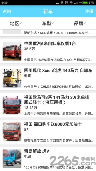▼新车:汇集各大品牌经销商最新车型信息,提供详细参数配置和购车金融方案,助您轻松选购理想货车。