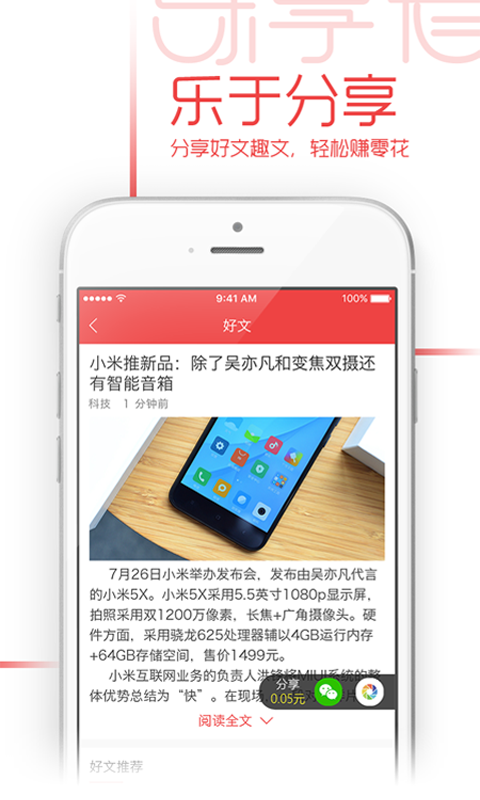 1、乐于分享:分享好文趣文,轻松赚零花钱;平台提供多种分享渠道,包括微信、QQ等社交平台,每次成功分享都能获得相应奖励。分享次数越多,收益越高,真正实现知识变现。