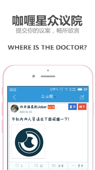 蓝盒子手机版是专为英国国民科幻剧《神秘博士》打造的垂直社交平台。作为全球最大的博士粉丝聚集地,这里汇聚了来自不同时空维度的剧迷。你可以在这里找到最新剧集解析、经典角色讨论、幕后花絮分享等丰富内容。无论是想重温老版经典,还是追更最新季剧情,都能在这里找到知音。独特的时空主题界面设计,让你仿佛置身于博士的蓝色警亭之中,开启一段奇妙的社交冒险。