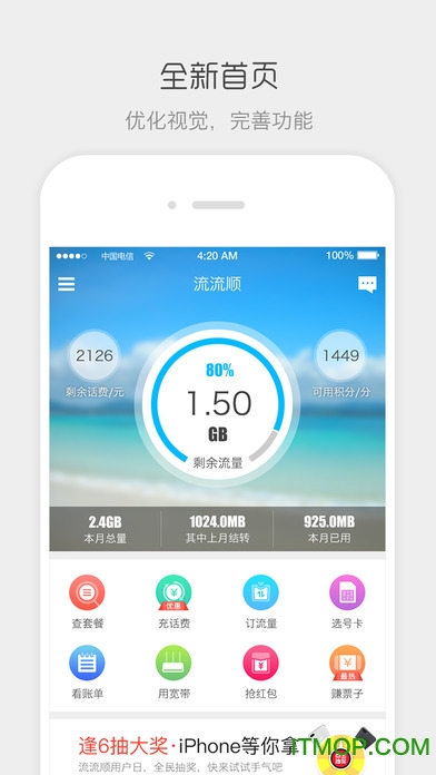 四川电信流流顺苹果手机版是一款专为四川电信用户量身定制的智能服务应用。它不仅提供实时流量查询、话费充值等基础功能,还整合了丰富的优惠活动和个性化服务。用户可以通过简洁直观的界面轻松管理电信业务,享受一站式便捷体验。此外,应用还特别设计了趣味互动玩法,让日常通信服务变得更有趣。无论是查询套餐余量、参与限时活动,还是兑换实用奖励,都能在这里快速完成,是四川电信用户不可或缺的掌上助手。
