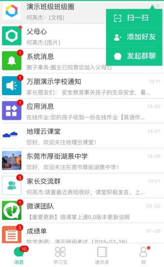 3、消息:强大的消息中心支持教师发送各类校园信息,包括文字通知、图片作业、语音留言等多种形式,家长和学生可以实时接收并查看,确保信息传递的及时性和准确性。