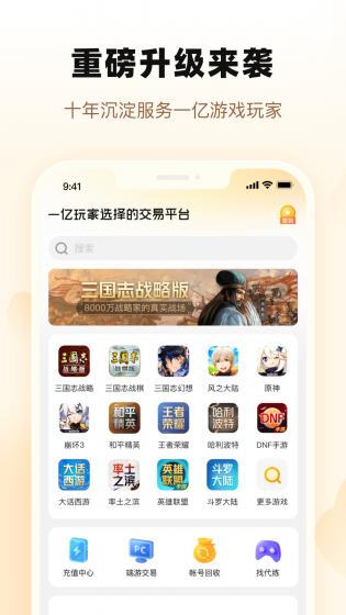 1.账号交易:支持游戏账号的买卖、租赁等业务,提供账号估值、安全检测等配套服务。