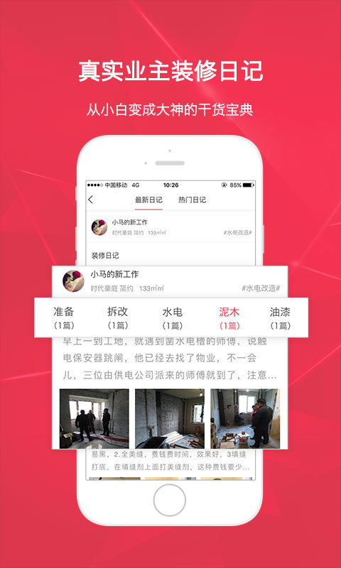 ⑥装修日记:记录业主筑家过程中的点点滴滴,分享装修经验与教训,让其他用户少走弯路,共同打造理想家居。