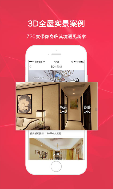 ③装修灵感:汇集十万余张高品质装修效果图,涵盖客厅、电视背景墙、卧室、餐厅、厨房、书房、阳台等各类空间,满足家装、工装不同需求;