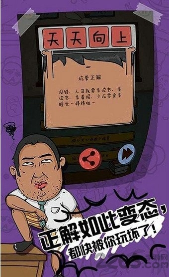 游戏拥有上百个精心设计的奇葩关卡,每个关卡都暗藏玄机,需要玩家打破常规思维才能找到正确答案。当遇到实在解不开的难题时,便捷的求助功能可以让你轻松向好友求助。成功通关后,还能通过炫耀功能向好友展示战绩,邀请更多人加入这场节操尽失的答题狂欢。游戏操作简单直观,只需找出正确答案即可过关,但看似简单的题目背后往往隐藏着令人抓狂的陷阱。层层递进的挑战难度和不断刷新下限的题目设计,让玩家在过关后能获得满满的成就感。
