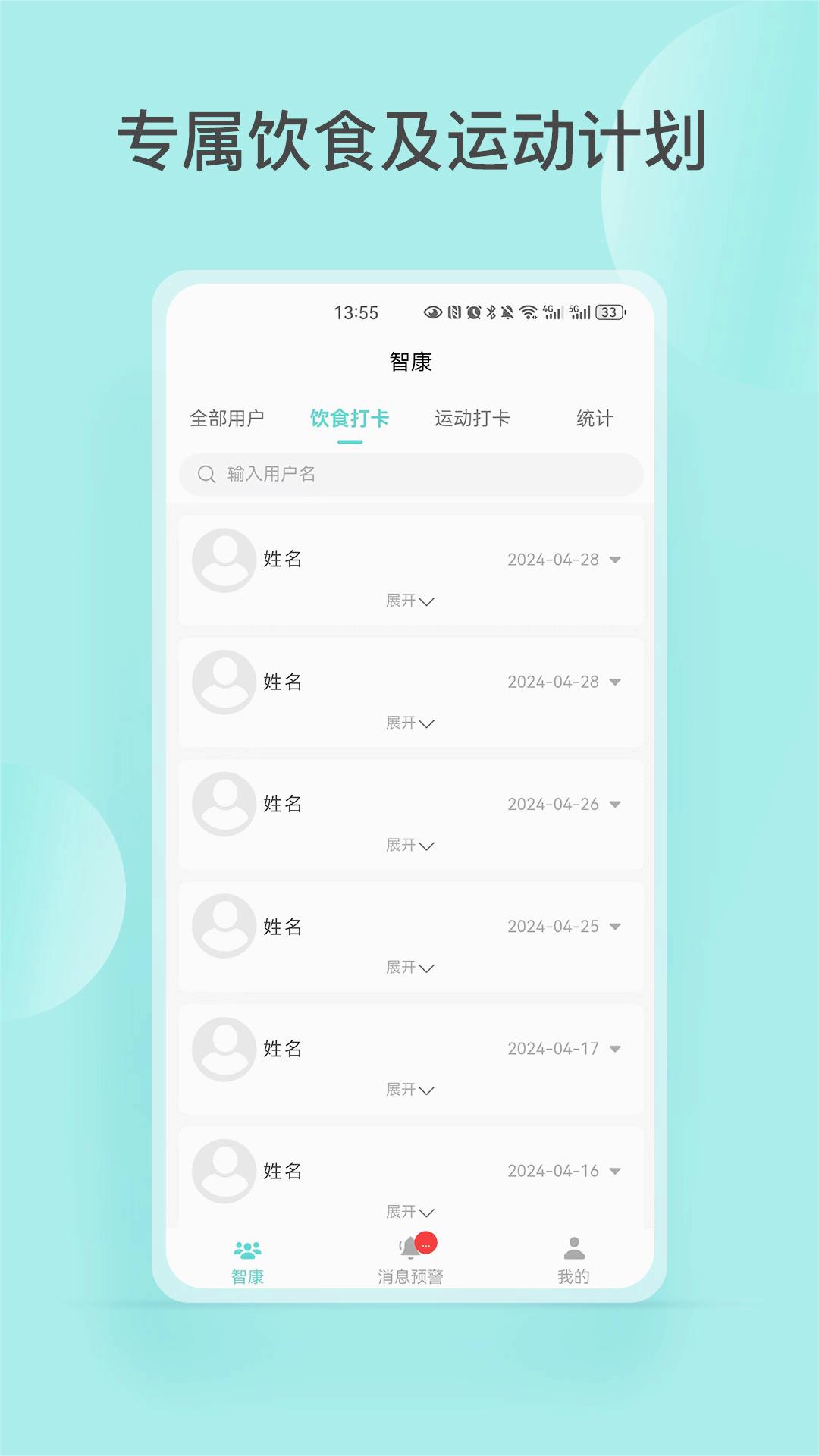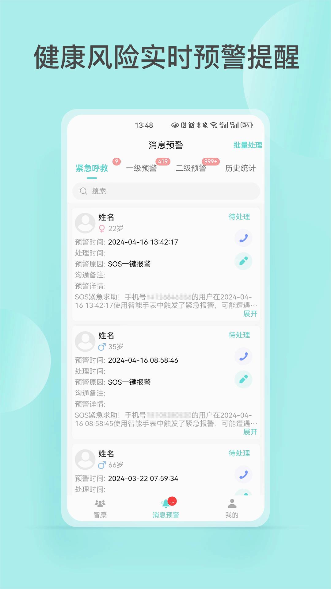 1、健康预警消息及时查看,高效处理:系统会自动识别异常健康数据并即时推送预警,确保健康管理师能在第一时间采取应对措施。