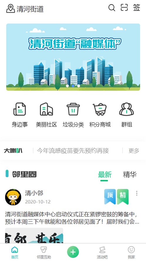 大家好,我是"清河有邻",由清河街道精心打造的邻里互动平台。我的名字寓意着"比邻而居,大美清河",承载着构建和谐社区的美好愿景。作为清河人的专属APP,我集资讯获取、便民服务、邻里社交于一体,致力于成为连接社区与居民的桥梁。在这里,您可以感受到浓浓的邻里情谊,体验智慧社区带来的便捷生活。