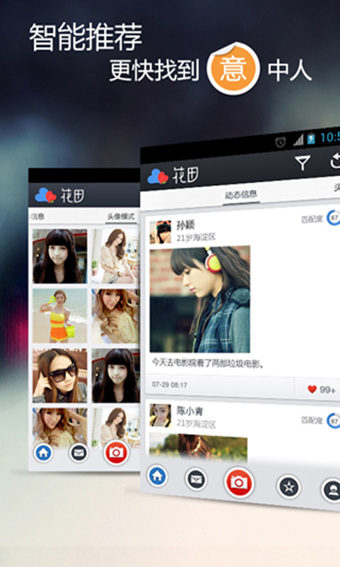 - 创新的头像浏览模式,让你可以快速浏览大量用户照片,通过眼缘寻找最让你心动的那个人