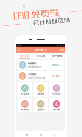 会计app是一款专为会计从业资格考试打造的移动学习平台,集视频课程、电子讲义、智能题库于一体,为用户提供全方位的学习支持。应用内所有资源均由专业教研团队精心研发,严格遵循最新考试大纲,帮助考生高效备考。无论是零基础入门还是考前冲刺,这款应用都能满足不同阶段的学习需求。其便捷的离线下载功能让用户随时随地利用碎片时间学习,成为95%会计学员的首选备考工具。